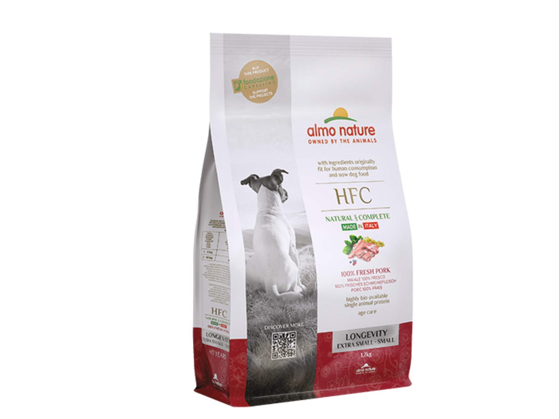 Almo Nature HFC Longevity Dry Food for Extra Small/ Small Adult Dogs?is the kibble for the house dog, used to living in heated environments in winter and cooled in summer, but always with its specificity as a dog and not a humanized child.