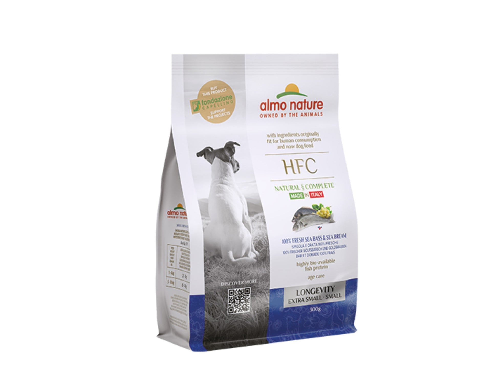 Almo Nature HFC Longevity Dry Food for Extra Small/ Small Adult Dogs?is the kibble for the house dog, used to living in heated environments in winter and cooled in summer, but always with its specificity as a dog and not a humanized child.