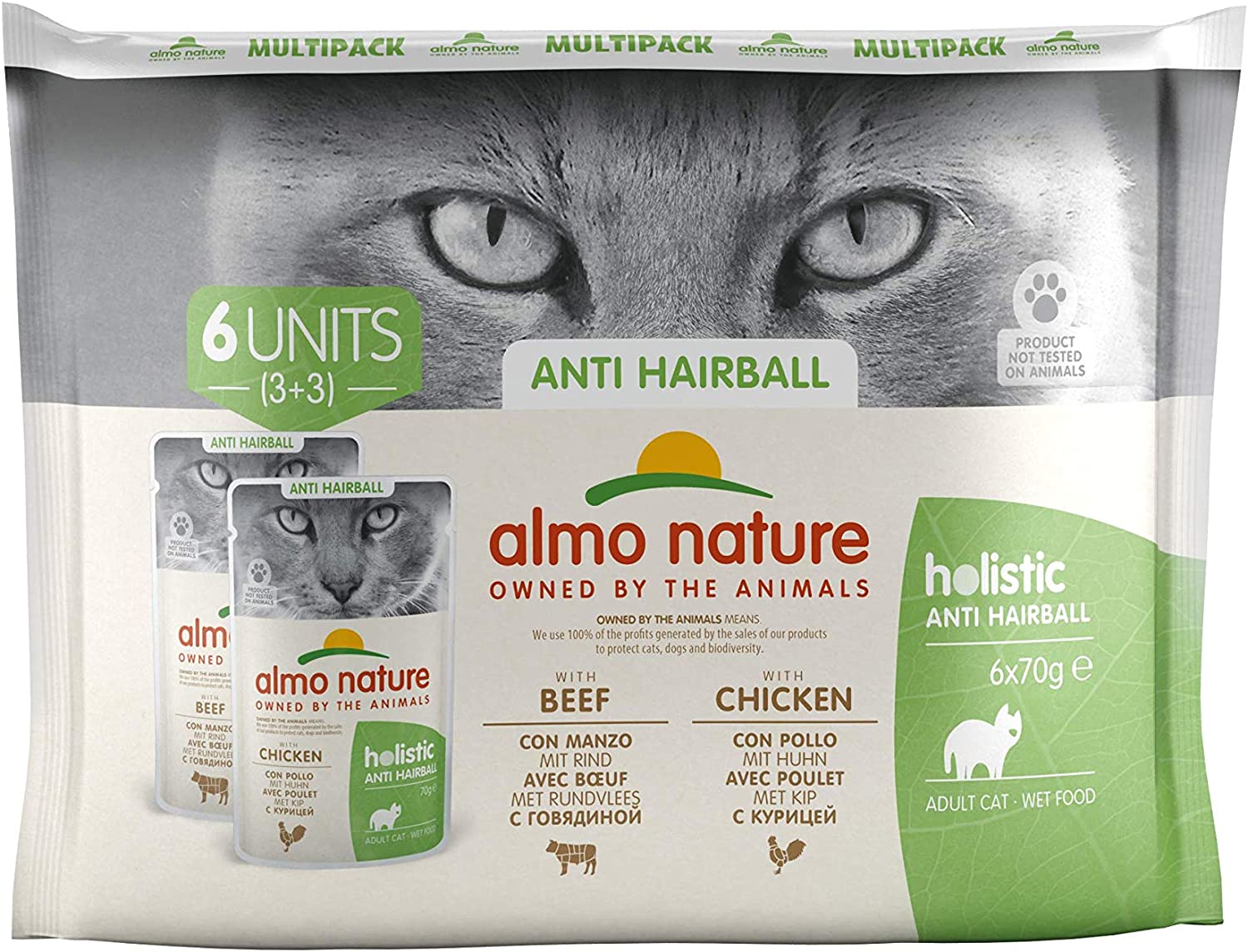 Anti hairball wet - Complete food for cats - is available in 70G pouches. From today, also available in multipack.